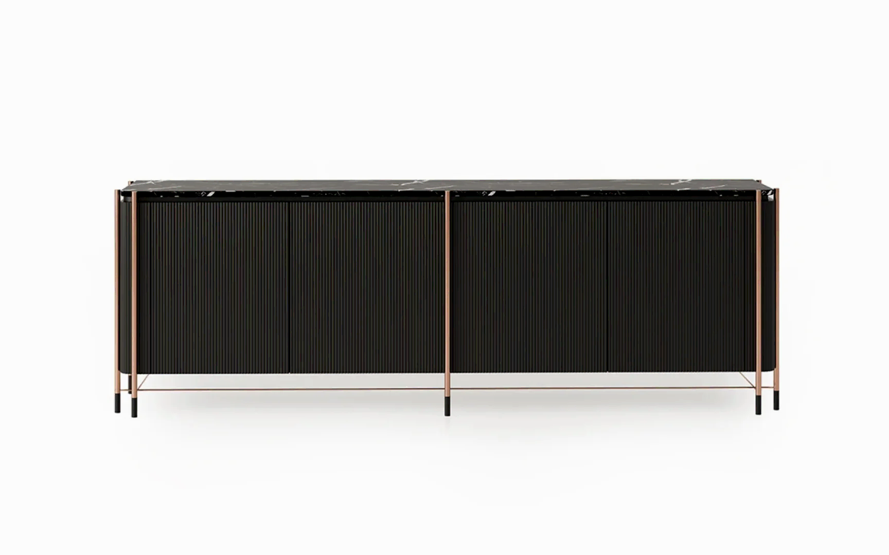 Siyahın cesur dokunuşu, mermerin karakteristik dokusu ile güçlenirken, bu etkileyici birlikteliğe etkileyici detaylar eşlik ediyor.