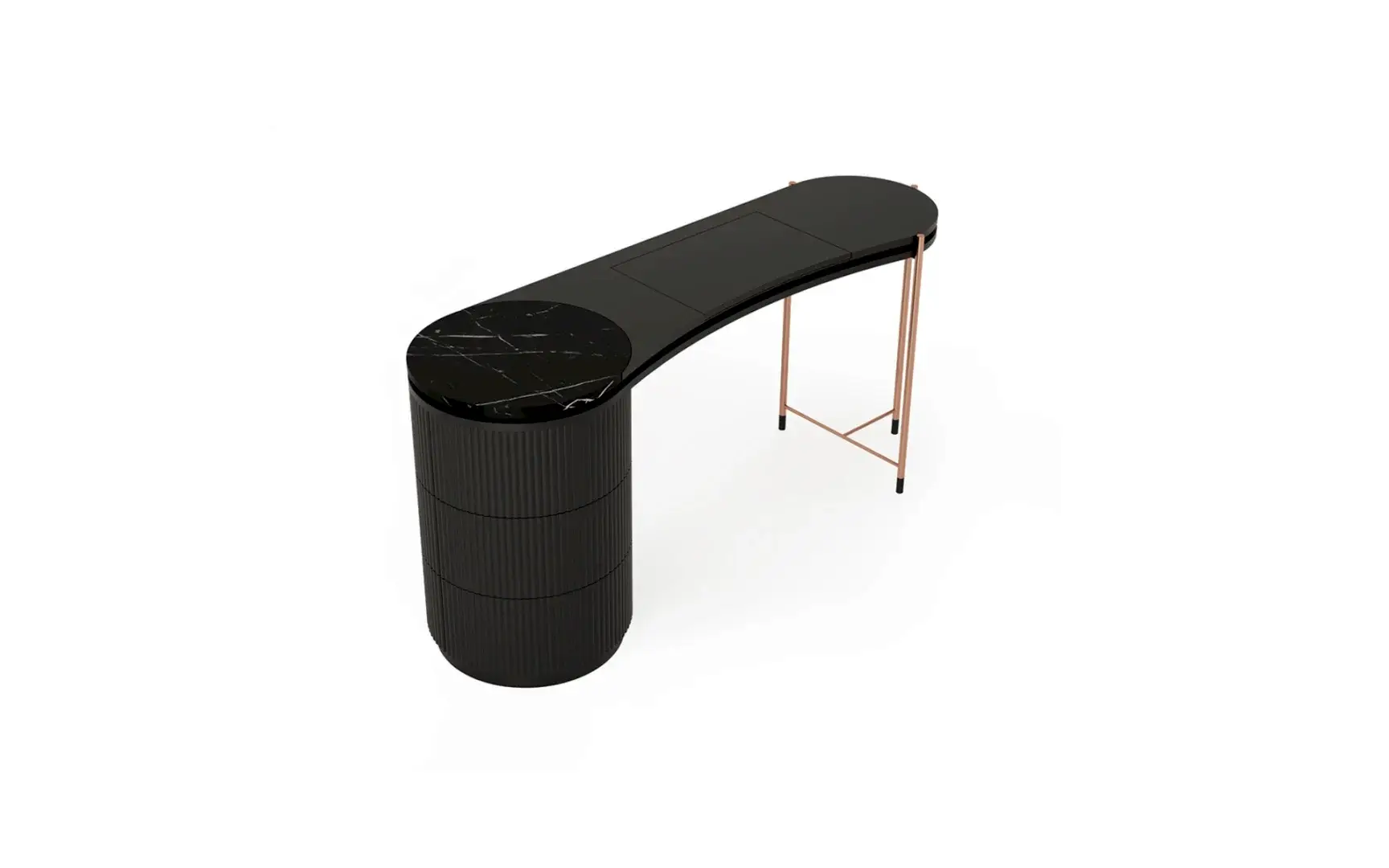 Yüksek ayak formunda bulunan, rose metal detaylar ile yatak odanızın havasını değiştirecek Dali Makyaj Masası, şık mermer detayı ile büyüleyici bir bütünlük sağlıyor. Göz yormayan yalın ama gösterişli tavrı, işlevselliği vurgulayan takılık bölmesi ile sizi kendisine hayran bırakacak…