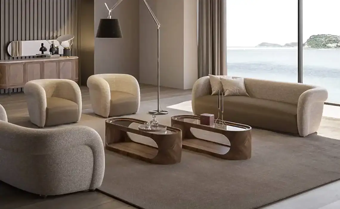 Gauss Oturma Odası, oval kol tasarımı ve soft duruşuyla yaşam alanınıza modern bir yorum kazandırıyor.